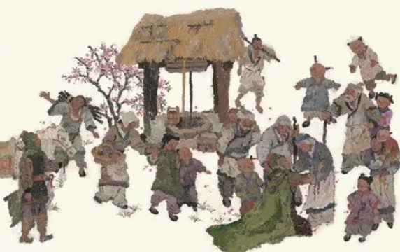 在《桃花源的故事》中,蔡皋不仅呈现了传统文化的诗意,更用她的画笔讲述了追寻之美。她在绘本中大量运用国画留白的处理方法,以温暖的色调统一画面,用柔和的笔触描绘桃花、河流、渔船、农夫和耕牛,画面中的一切仿佛都带着自然的气息。通过她的笔触,读者可以感受到传统与现代、现实与虚构之间的微妙张力。这本绘本并不是对《桃花源记》的简单复制,而是蔡皋对传统文化的一次全新诠释。陶渊明的原作中,桃花源带有浓厚的避世思想,而蔡皋的“桃花源”更接近真实的生活——它是乡村的日常,是人们对幸福的向往。她在绘本中融入了自己对乡村生活的热爱,以细腻的画笔描绘出一种朴素而积极的生命精神。在“讲述中国的美育故事——华茂美堉专项奖获奖人事迹报告会”上,谈到《桃花源的故事》绘本创作的时候,蔡皋反复提到“源头”这个词。在她看来,源头是艺术创作的活水之源,而每个人的源头都深深扎根于生命的经历之中。她说:“童年是我源头,文学是我源头,艺术是我源头,我就是不断地在我的生活中,去回望我的源头,因为源头有活水。”她的绘本创作,从未脱离过她的生活经历,甚至可以说,她的生活每一寸边角料都被她精心拾起,化为艺术的材料。