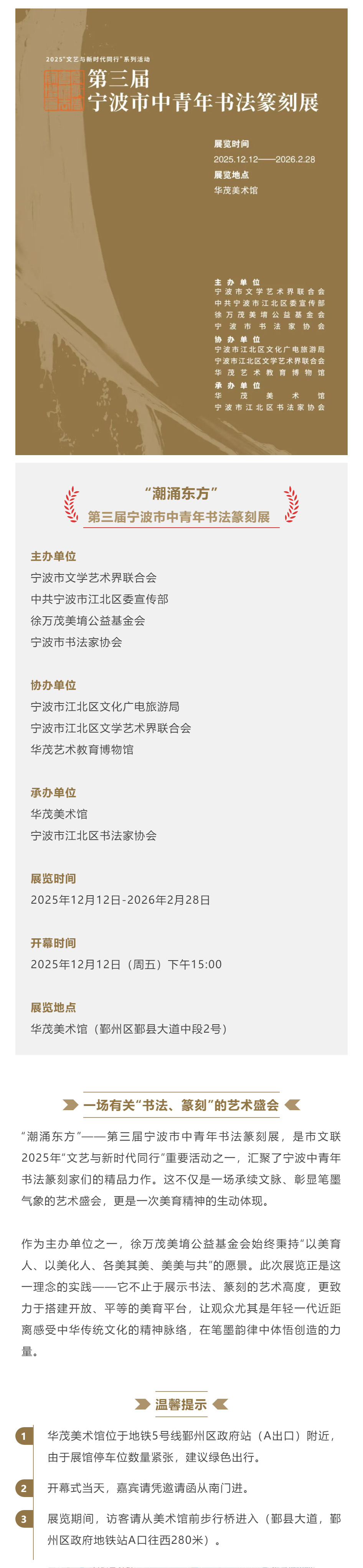 预告 | “潮涌东方”第三届宁波市中青年书法篆刻展即将开幕