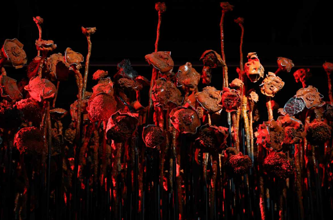 据悉,这片“葵莲共生”装置此前已在中国国家博物馆、德国德累斯顿博物馆、莱茵河畔等地展出,每到一处都呈现出独特的气质,而此次在宁波美术馆,它像“一个炉火正红的葵园”,老葵老去、新葵生长,尽显共生的希望。