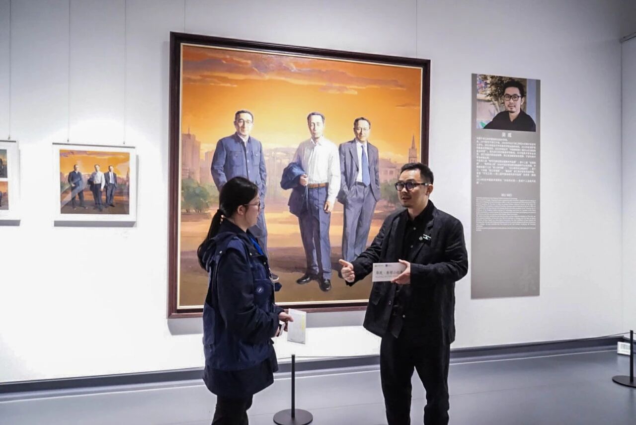 @全山石创研班学员吴威:就是我们平时画创作,其实就是在不停地积蓄我们的灵感,所以在创研班期间,导师带我们出去看展览,去新疆采风写生,让我们深入生活去,去观察我们身边的一些生活,一些社会的现象,他都是希望我们在这个创作的时候,能够脚踏实地地,来表现我们的生活里面一些有意思的东西,有意思的题材,我们整个班,你看每个同学,都可能有一些自己的选题,一个班几十个同学也不能重复,所以每个人在我们当时会有,3-5个主题,导师们就觉得这3-5个主题里面,哪一个可能更适合画,哪一个跟大家可能有区别,或者更适合我来画,那我在选择画这幅画的时候,前面也有好多题材,最后我们先生最后定下来,让我来画这个宁波的院士,宁波是院士之乡嘛,有120多位的院士,全国里面是排第一的,所以这三位院士呢,其实就是代表着,宁波的广大的院士的一种形象,就是为祖国建设,为社会对人民做出的一些贡献,来弘扬他们科学家的一些丰功伟绩,所以这样的一种寻求主题的方式,其实一方面是来自于采风写生,或者是主题性的寻找,另外一方面其实是,我本身就是宁波人,在我们这个班里面,就我是一个唯一宁波人,那如果要表达宁波的一个主题,那肯定是我来表达是最合适的,因为我土生土长宁波人,对这个画宁波的题材,会有更大的感情投入。