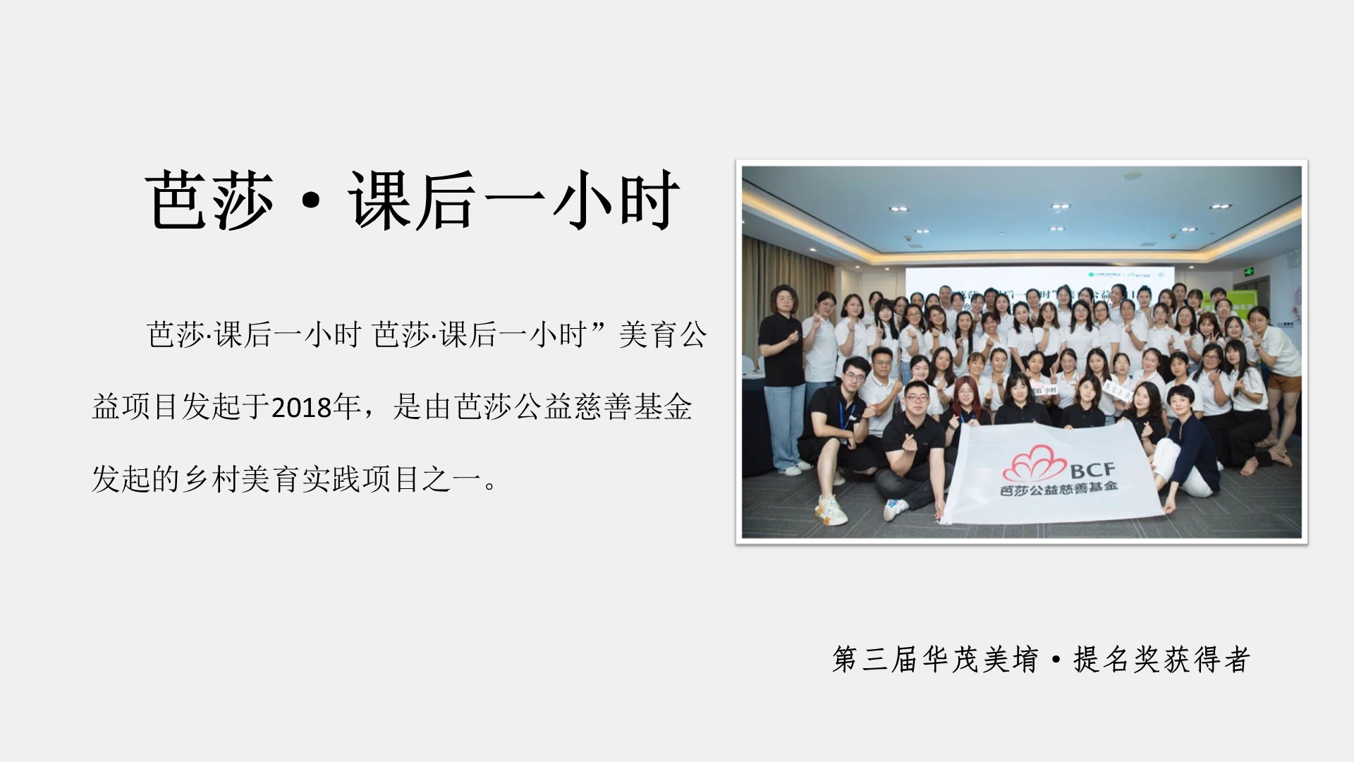 5年,每天1小时,是“芭莎·课后一小时”与乡村孩子们之间的默契。从最初4间芭莎美育教室扩展到如今21个省、直辖市、自治区,共建设540余间投入使用,第三届华茂美堉奖提名奖获奖团体——“芭莎·课后一小时”美育公益项目,用美育与孩子们一同成长。