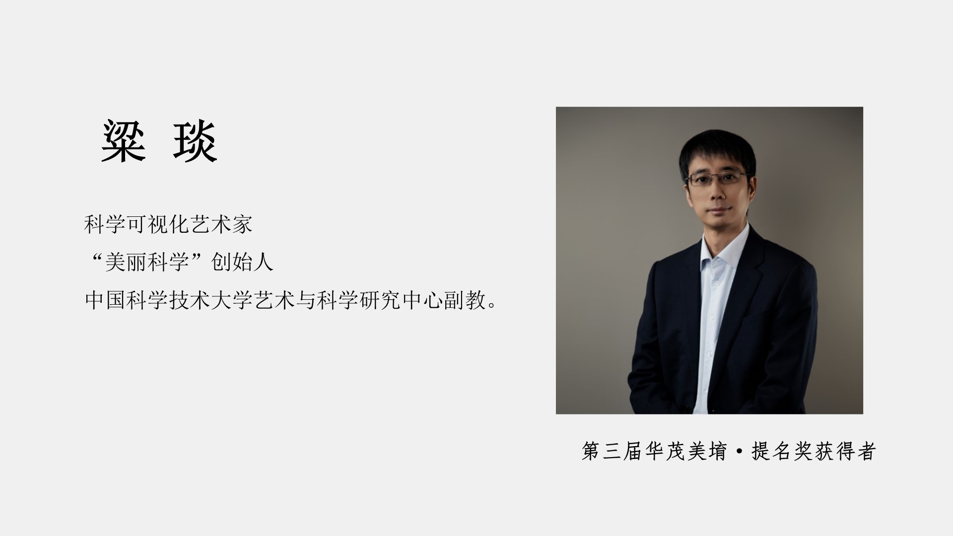 梁 琰/ Liang Yan 科学可视化艺术家,清华大学化学系学士、硕士,美国明尼苏达大学材料学博士,中国科学技术大学艺术与科学研究中心副教授、“美丽科学”创始人。