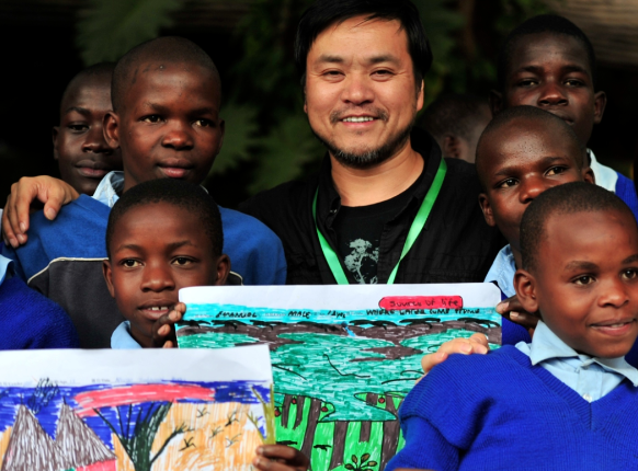在非洲的马赛马拉草原,他组织了一场特别的艺术课堂,通过结合当地材料与中国艺术元素,学生创作出融合中非文化的作品,这些作品后来被联合国教科文组织选入展览。此外,他在法国图卢兹举办了四川和法国的展览,展现了中西文化的碰撞与融合。这些国际交流活动不仅让中国美术教育走向了世界,也让中国学生通过艺术开阔了国际视野。