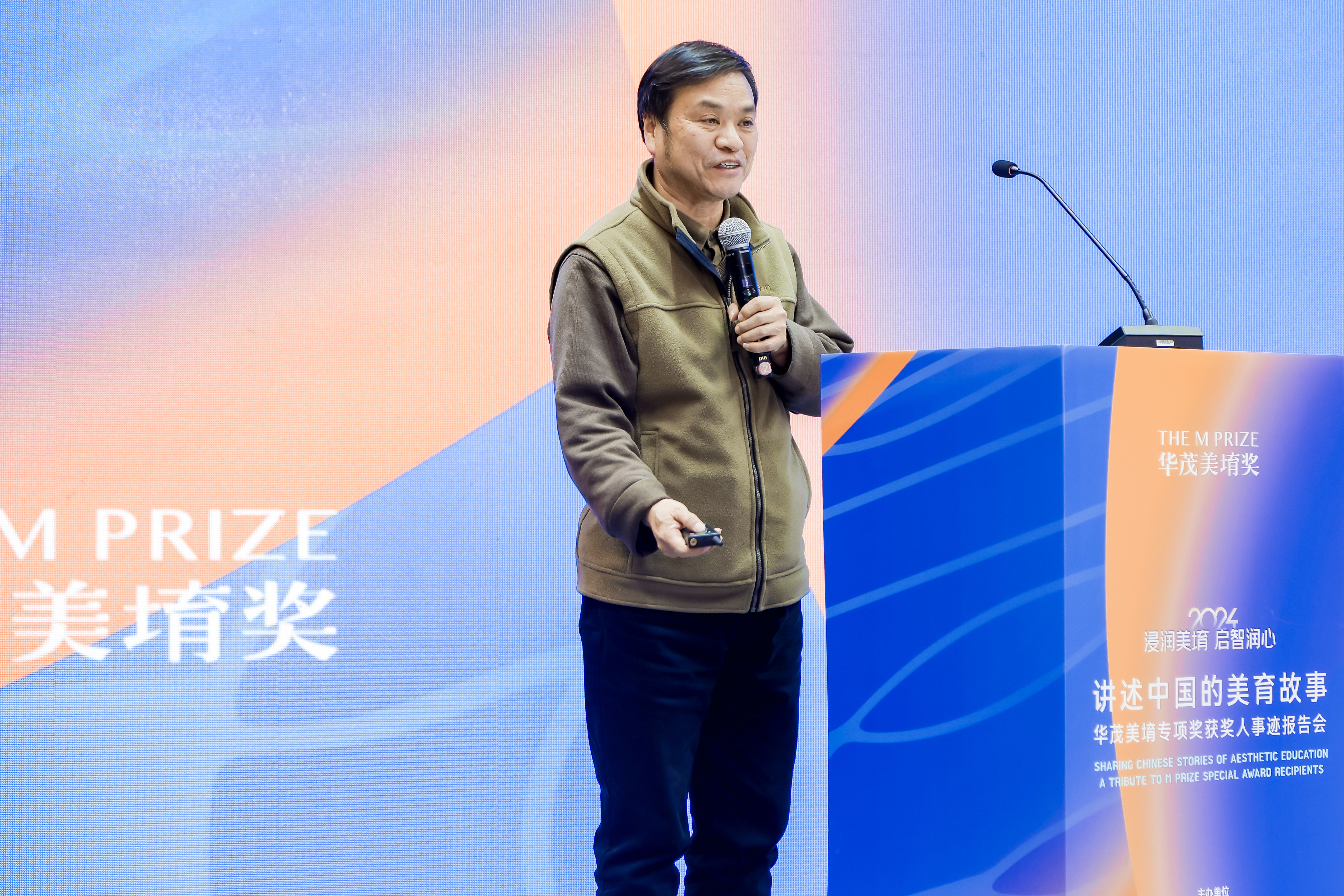 他酷爱美术,喜好书法,擅长写作,对其他姊妹艺术也有自己独特的见解。他积极开展“地域文化与美术教育的传承创新、艺术实践工作坊和校园艺术馆建设”,对美育的理解与投入始终如一。他在教育上始终热爱美、展示美、实践美、交流美,分享美和创造美,为孩子们播下了美的种子。