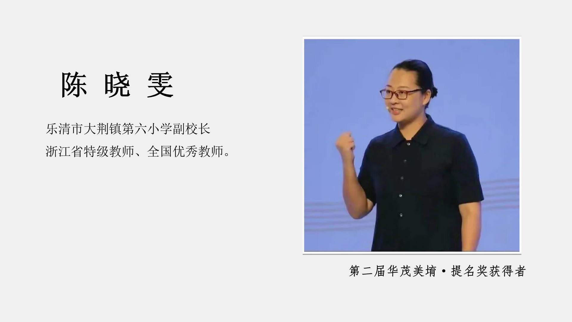 她就是乐清市大荆镇第六小学副校长、浙江省特级教师、全国优秀教师、第二届华茂美堉奖提名奖获得者——陈晓雯女士。