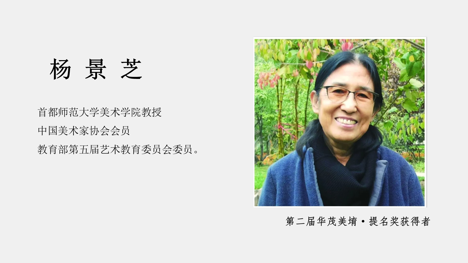 她就是第二届华茂美堉奖提名奖获奖者,首都师范大学美术学院教授,中国美术家协会会员,教育部第五届艺术教育委员会委员——杨景芝老师。