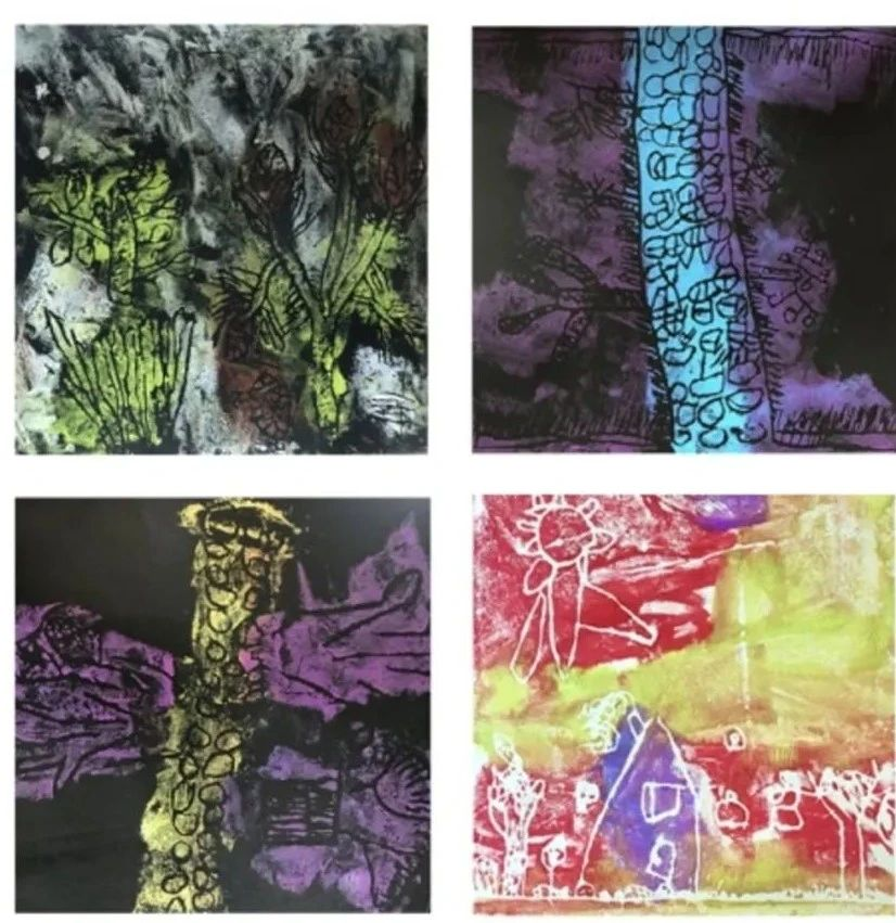 盲童创作版画,首先要触摸所画物体的模型,然后在吹塑板上一边摸一边刻画图案。涂颜料后,再把卡纸覆盖到板上印画。传统美术教育强调的示范教学于盲童是无效的,胡俊团队通常做些教学引导,让盲童们“合作学习”,互相触摸彼此的作品。