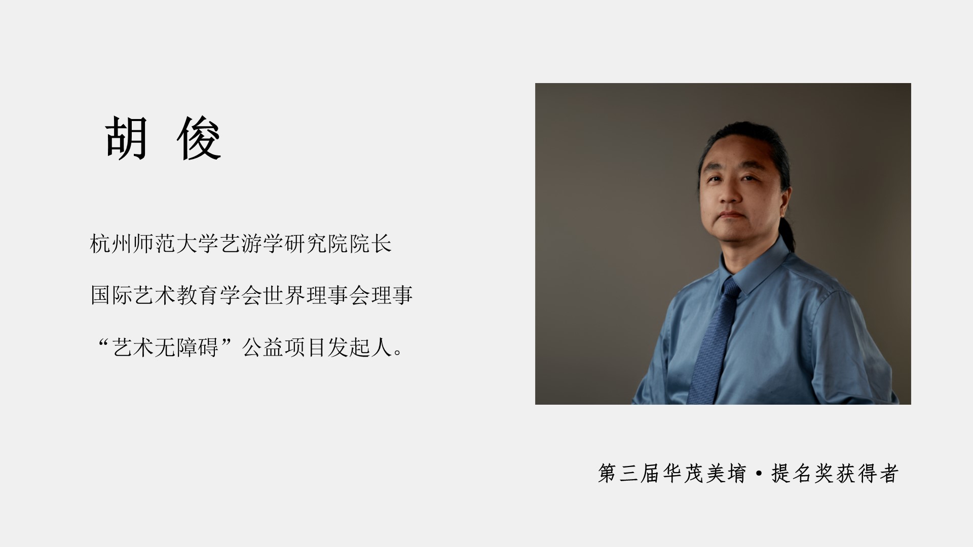 胡俊/ Hu Jun 博士,杭州师范大学艺游学研究院院长、国际艺术教育学会世界理事会理事、“艺术无障碍”公益项目发起人。