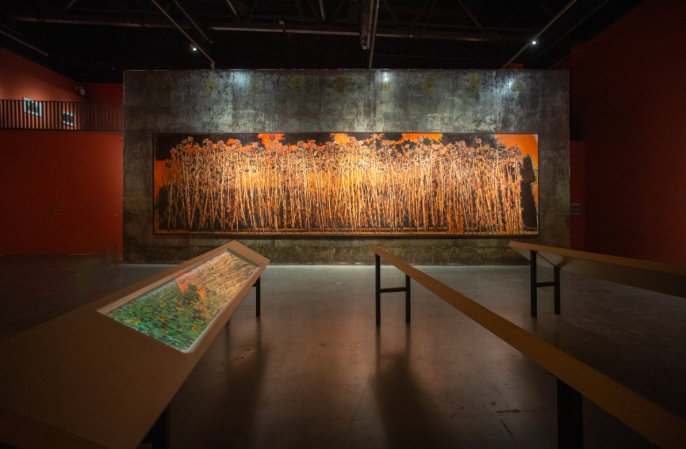 展厅内,《葵原长卷》以浓重油彩堆叠出葵原的苍茫,葵杆如林、葵盘如炬,宛如一代人默然伫立于历史荒原。